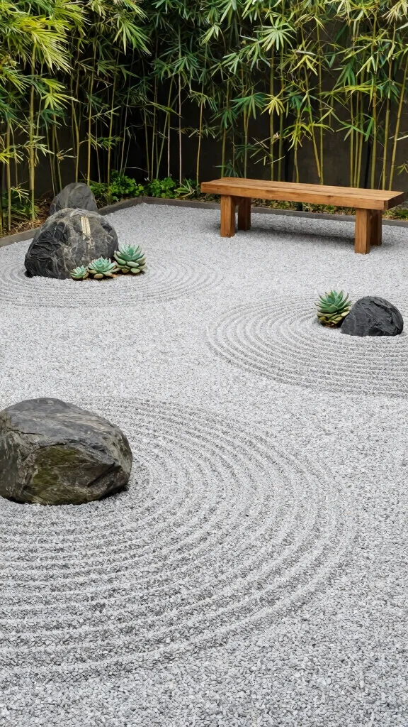 This incorporation of Zen elements not only promotes relaxation but also highlights the beauty of natural textures in your garden.