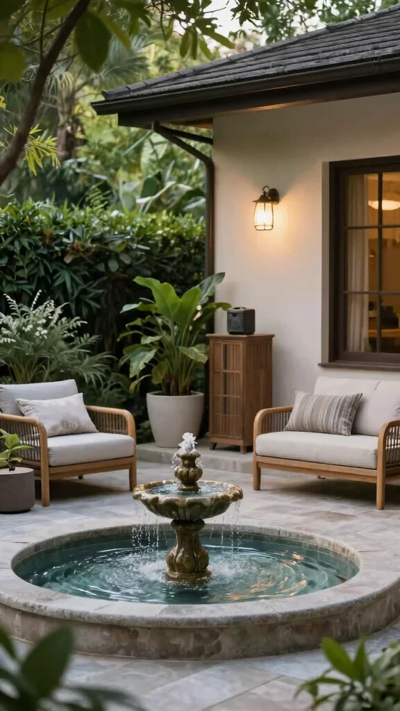This thoughtful integration of sound enhances the overall ambiance, creating a serene outdoor retreat.