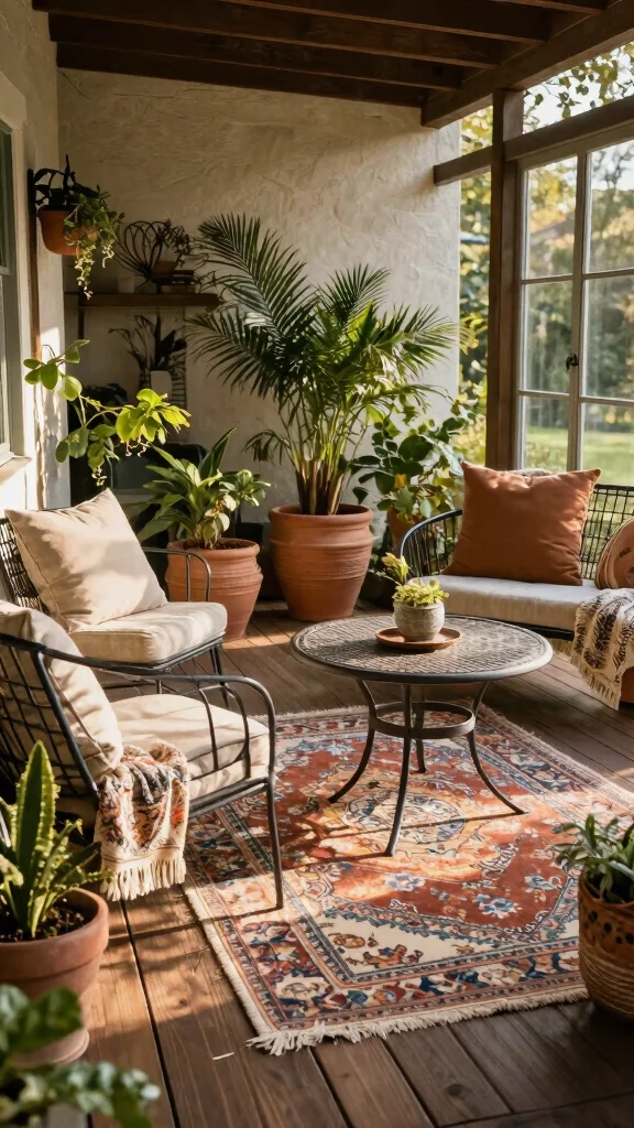 Fun fact: back porch ideas like colorful cushions, rugs, and painted furniture can boost perceived coziness by up to 30%. Swap in fresh hues with the seasons, and your space stays inviting year-round.