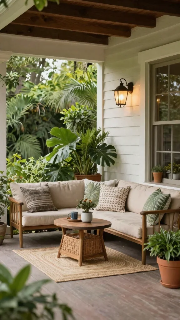 Soft textiles and an abundance of pillows can turn your back porch into a cozy haven. Add a variety of cushions in different sizes, colors, and fabrics to create a layered, inviting look. Opt for outdoor-safe materials that withstand the elements while providing comfort. A few throw blankets can add warmth, making your space perfect for cool evenings spent outdoors.