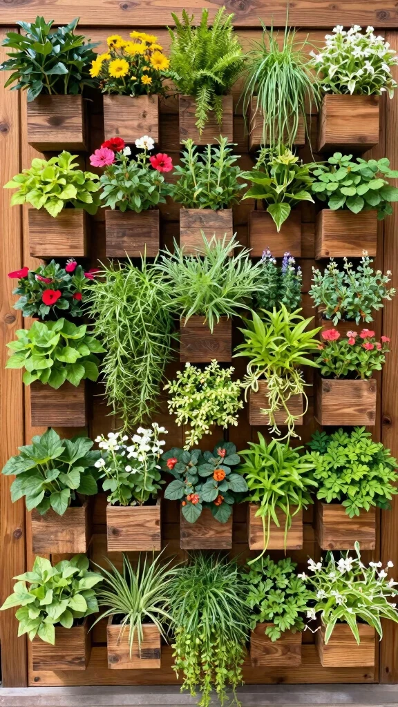 – Pair wall-mounted planters with climbing plants for height.
