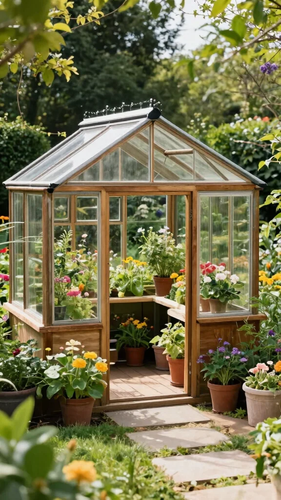 An elegant glass greenhouse offers a sophisticated touch to your garden, providing a modern space for your plants to thrive. With tempered glass, youโll maximize light while creating a stunning visual centerpiece. This design is perfect for showcasing a variety of plants, from vibrant orchids to lush ferns.