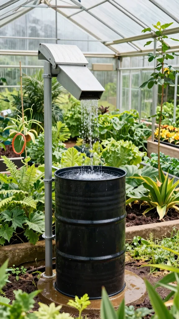 A simple setup involves collecting rainwater from your greenhouse roof through gutters into barrels or tanks. This collected water can then be used to irrigate your plants, ensuring they receive essential nutrients found in rainwater.