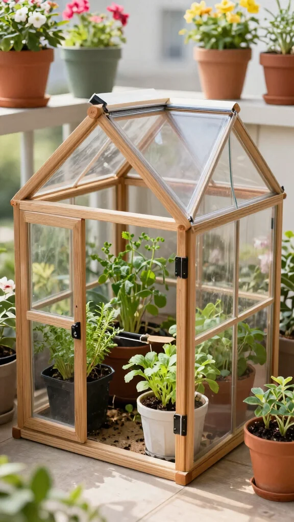 Mini greenhouses can be simple, like a framed shelf covered with plastic, or even a glass cabinet that doubles as a greenhouse. They are fantastic for starting seedlings or growing small herbs and vegetables, allowing you to enjoy gardening in limited spaces.