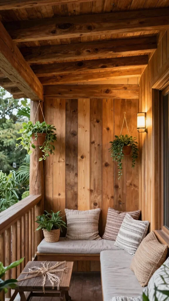 Integrating reclaimed wood panels into your balcony ceiling design brings character and sustainability to your outdoor space. Each panel tells its own story, offering a unique charm that makes your balcony truly one-of-a-kind. This design not only promotes eco-friendliness but also adds warmth and sophistication.