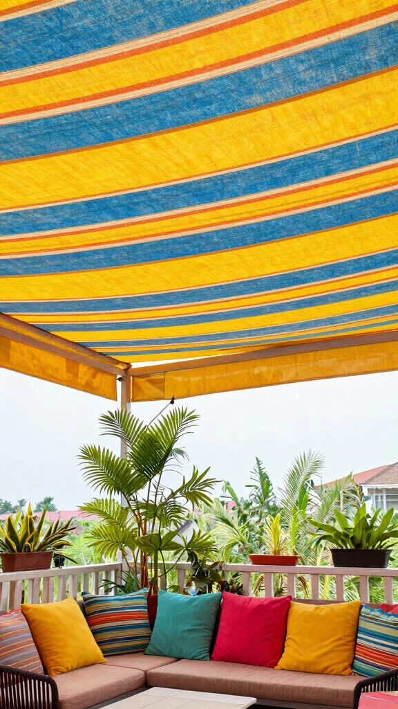 For a vibrant and playful aesthetic, consider a striped canvas ceiling that introduces a splash of color to your balcony. This design not only adds visual interest but also creates a cheerful atmosphere, perfect for entertaining or relaxing. Choose bold hues for a lively vibe or soft pastels for a more subdued feel.