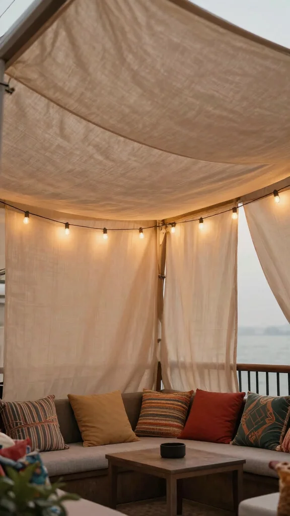 Opt for UV-resistant fabrics to ensure longevity, and consider incorporating fairy lights or lanterns for enchanting lighting. This approach not only provides shade but also enhances your outdoor experience, making it more enjoyable and cozy.