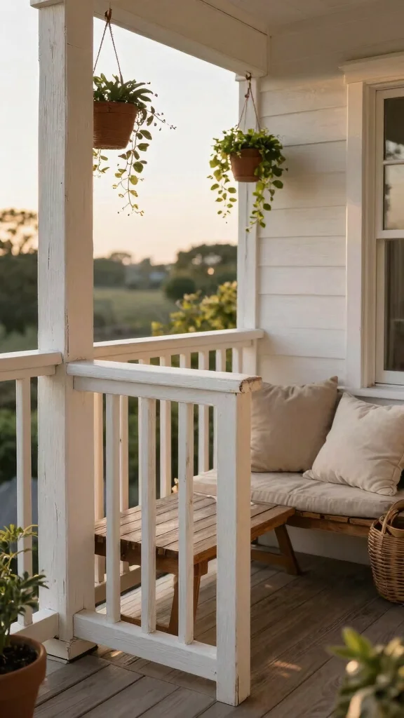 Farmhouse-style railings offer a warm and inviting feel, perfect for creating a cozy balcony space.