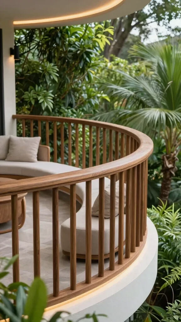 Curved railings introduce graceful lines to your balcony, enhancing its design with a sense of softness.