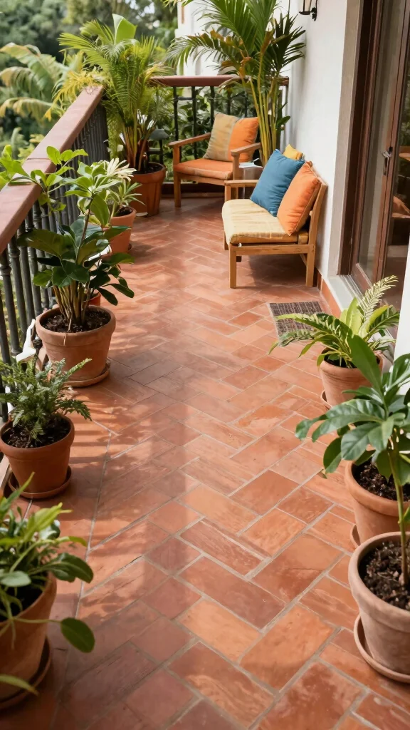 Why We Picked This: While wood-look porcelain tiles are a great choice for many, those looking for a more traditional style might prefer terracotta tiles. If you want to make a bold statement, geometric patterns could be for you. Each option serves different tastes and needs, so consider what fits best with your vision for your balcony.