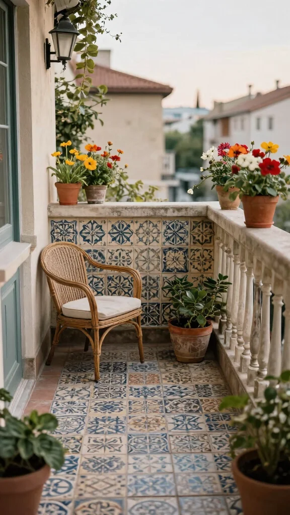 To create a cohesive theme, choose coordinating accessories that complement your vintage tiles. Soft lighting can evoke warmth and charm, making your balcony a lovely retreat for relaxation and socializing.
