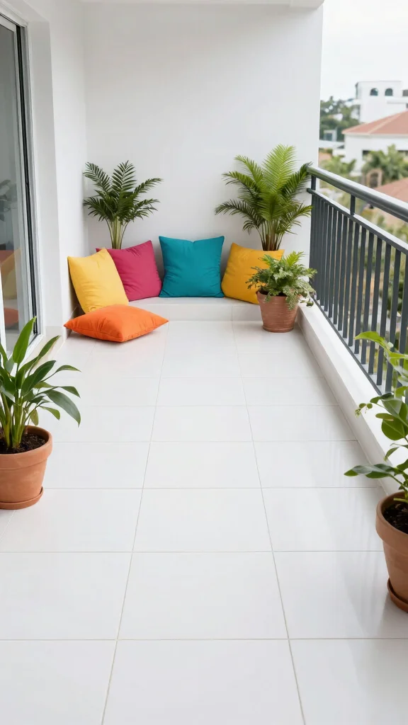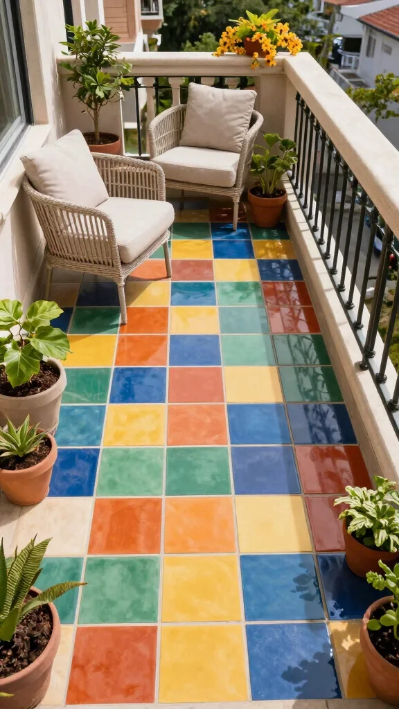 Fun fact: Bold balcony tile design ideas can boost perceived space by up to 20% in small outdoor areas, making your balcony feel bigger and brighter. Pair cobalt blue or sunny yellow with neutral furniture to let colors pop.