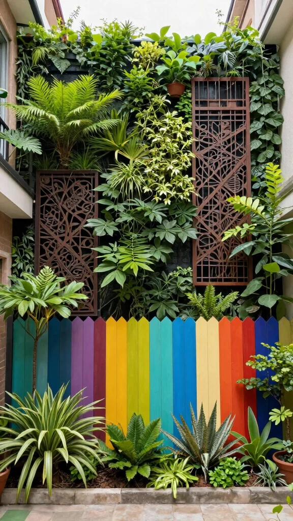 Explore living walls made of climbing plants or trellises for a lush backdrop, or incorporate decorative metal screens for a modern touch. Colorful painted wood or repurposed materials can also provide an artistic flair that reflects your personality.
