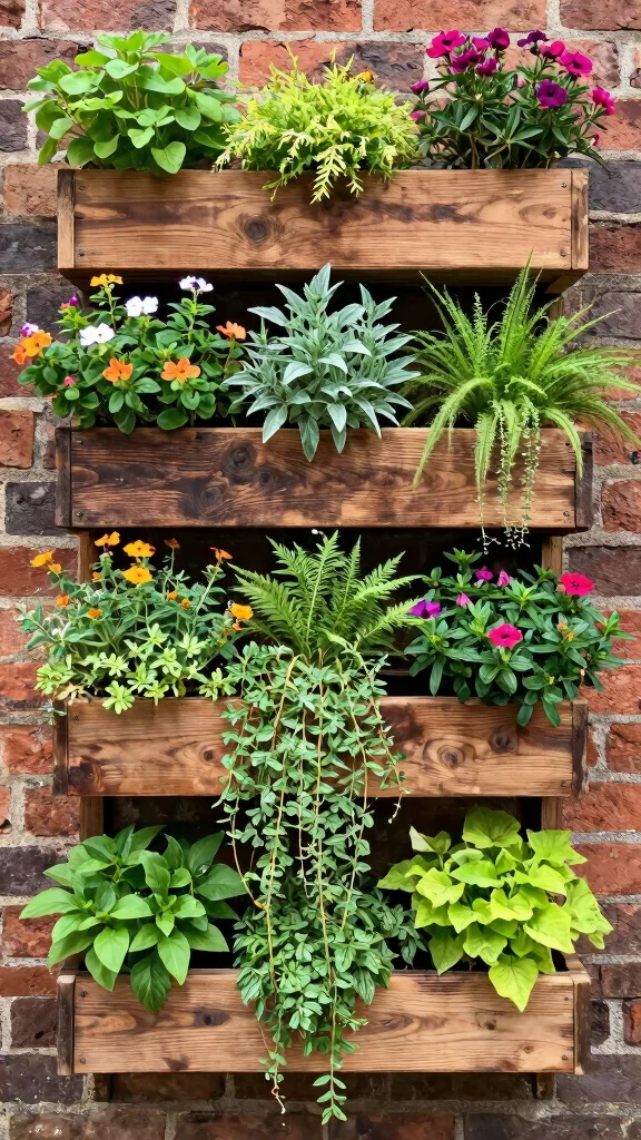 To get started, choose recycled materials to create charming vertical planters. Hanging potted herbs in neat rows offers a fresh supply for your kitchen, while colorful flowers can bring vibrancy to your walls. This approach not only saves space but provides a stunning focal point for your garden.