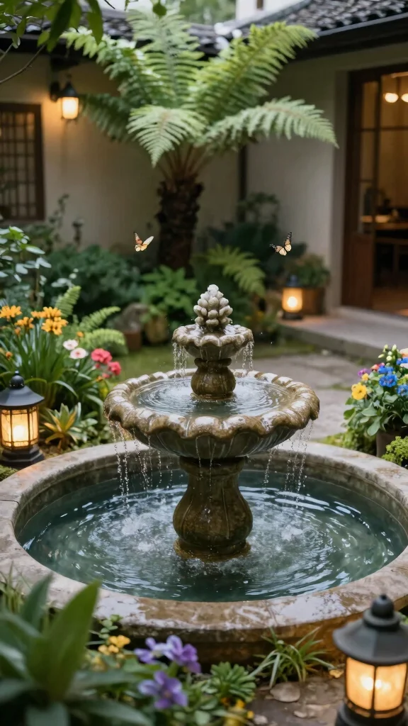 The gentle sound of flowing water creates a peaceful environment, making your courtyard an ideal spot for relaxation or meditation.