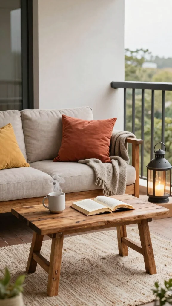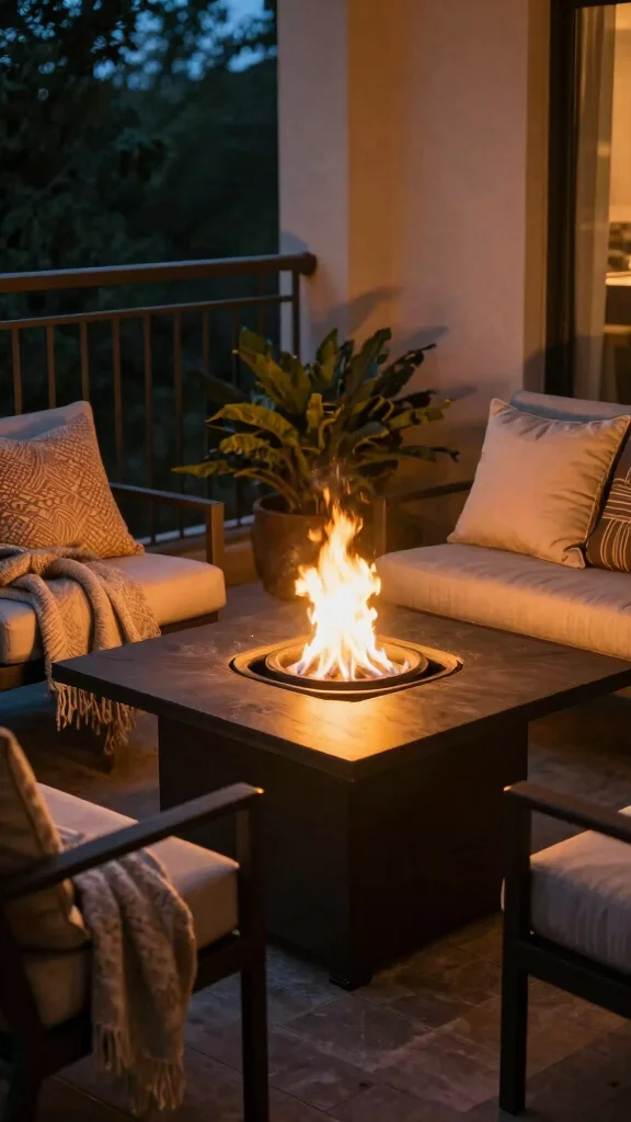 A fire pit table not only provides warmth but also creates a charming focal point for your balcony, inviting you to enjoy the outdoors year-round.