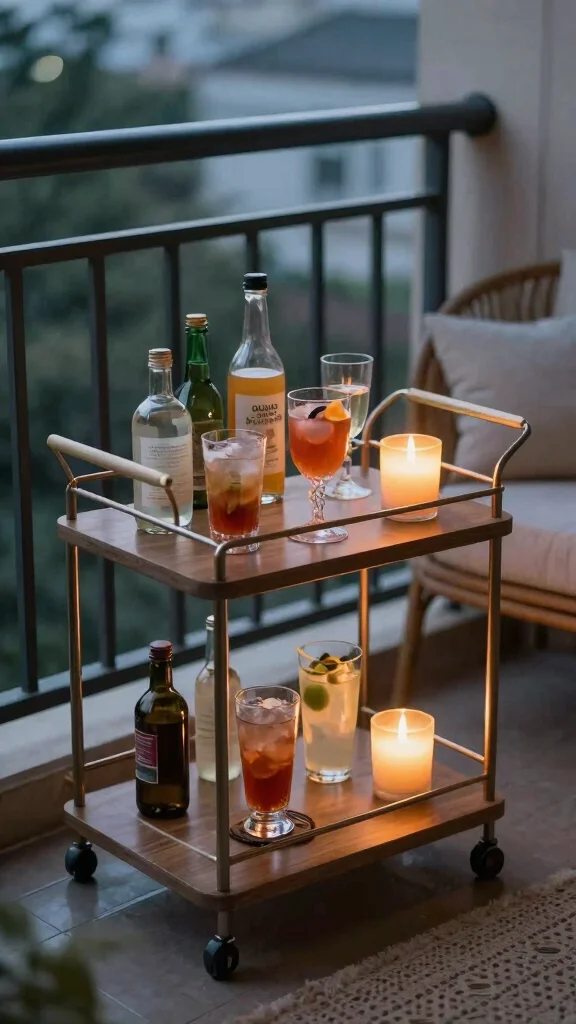 Fun fact: scent can boost mood by up to 40% within minutes. Lavender or citrus on your cozy balcony decor ideas instantly sets the vibe—pair it with a small beverage cart for a simple, relaxing ritual.
