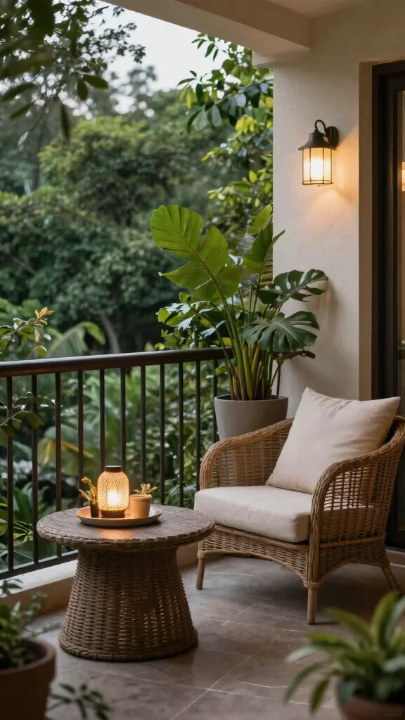 String lights add a magical touch and create a warm ambiance, perfect for evening relaxation on your balcony.