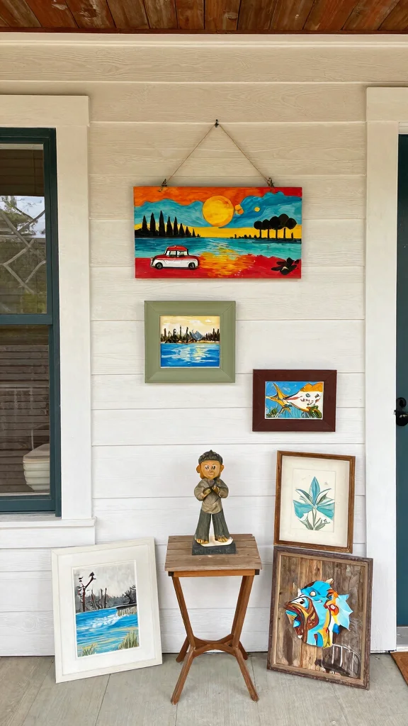 Cozy front porch ideas shine when outdoor artwork is both durable and personal. Choose weather-resistant pieces, mix 2D and 3D for depth, and arrange them at varied heights to create a welcoming, gallery-like vibe you’ll actually use.