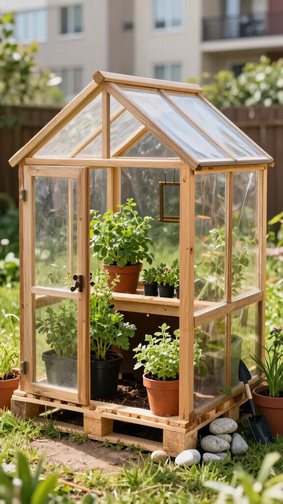 1. Mini Pallet Greenhouse