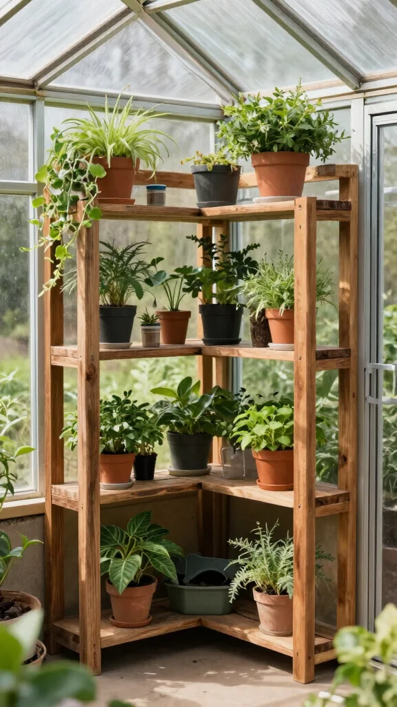 Fun fact: Corner shelving can boost usable greenhouse space by up to 40% in a compact setup. Build modular wood or metal tiers to fit tight corners, then rotate plants by height for easy access — diy greenhouse shelves that truly maximize every inch.