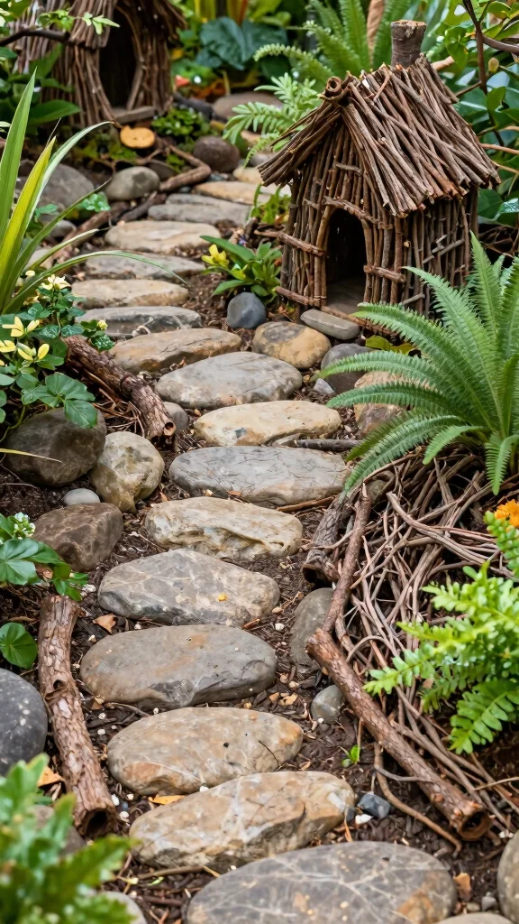 For practical implementation, choose brightly colored stones that stand out and create a fun atmosphere. Ensure the paths are whimsical and narrow, mimicking a natural woodland trail. Incorporating low-lying plants or tiny lanterns alongside the pathways enhances the overall enchantment while connecting to broader gardening trends that emphasize creativity and exploration.