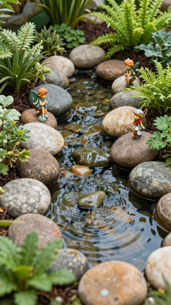 To create a simple pond, use a shallow dish filled with polished stones and faux water for a lovely touch. Look for miniature fountains that are easy to install and fit beautifully within your space. Surrounding your feature with colorful aquatic plants adds a lush, vibrant look while connecting with broader trends of incorporating natural elements into garden designs.