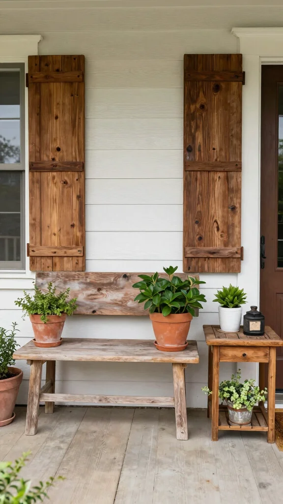 Natural wood accents bring an organic touch to your porch, aligning perfectly with a vintage-inspired theme.