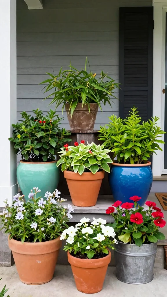 Unique planters beautify your porch while showcasing your love for plants and creativity.
