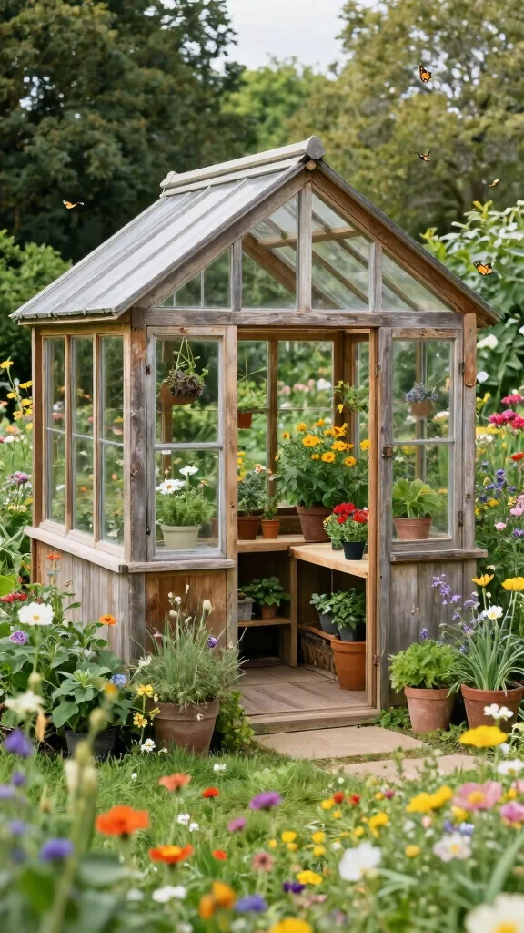 This rustic greenhouse isn’t just a nurturing space for your plants; it also adds a picturesque element to your garden, enriching your overall gardening experience.