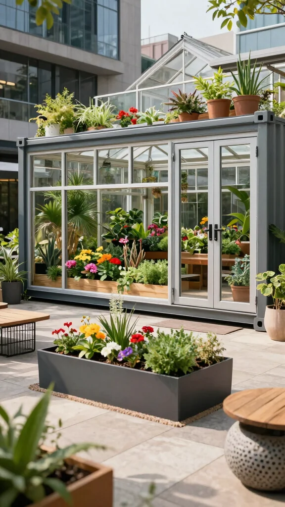 A contemporary shipping container greenhouse is not only a sustainable choice but also a conversation starter that enriches your modern garden decor.