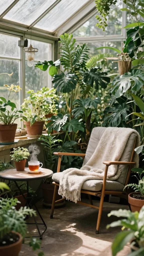 Design a cozy corner in your greenhouse that invites relaxation and peace. This warm space, filled with lush plants, is perfect for curling up with a book or sipping your favorite tea. By adding a small table and a comfy chair surrounded by greenery, you cultivate a nurturing atmosphere for both yourself and your plants.