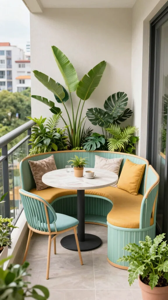 Transform your balcony into an urban jungle filled with lush houseplants. Opt for tropical varieties like monstera, ferns, and philodendrons to create a green sanctuary that softens your urban surroundings. Layer your plants at varying heights using stands or hanging planters, providing a refreshing contrast to the concrete environment.