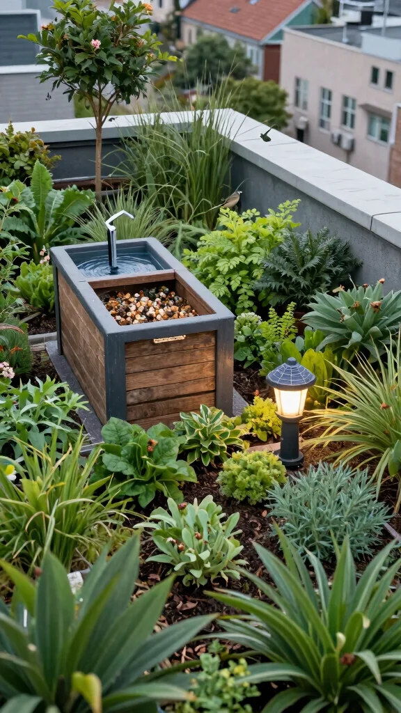 Include small water features to create a tranquil atmosphere and promote biodiversity in your rooftop garden.