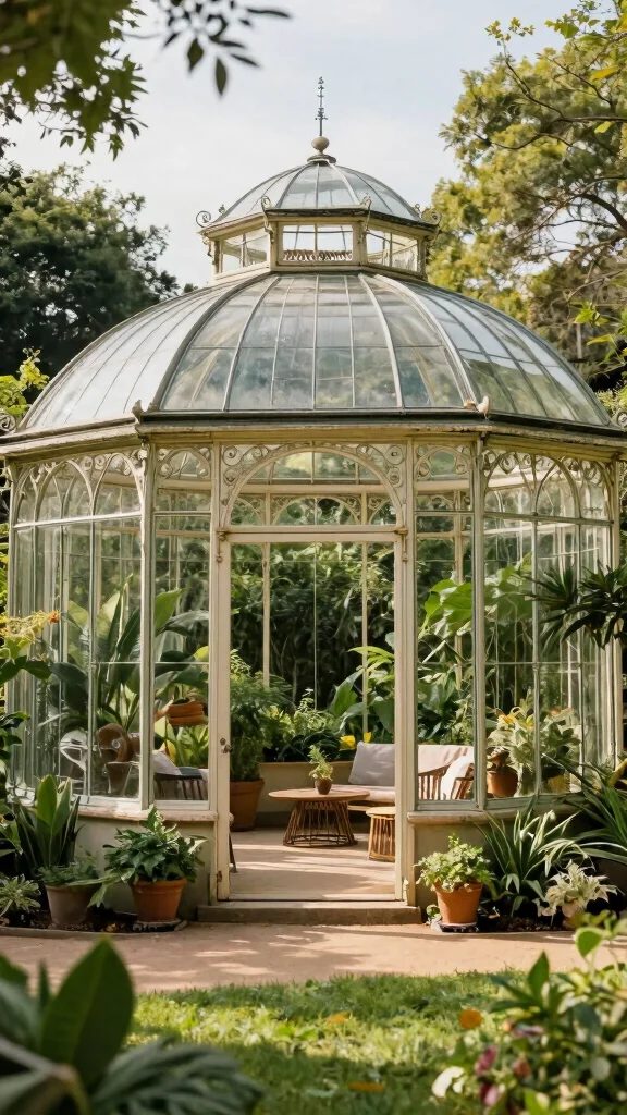 To implement this design, opt for a frameless glass structure or a simple metal frame that highlights the clarity of the glass. This choice enhances your garden’s beauty while maintaining a contemporary aesthetic.