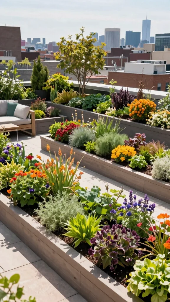 Creating a vertical garden transforms your rooftop into a lush retreat, enhancing the overall aesthetic with its natural beauty and texture.