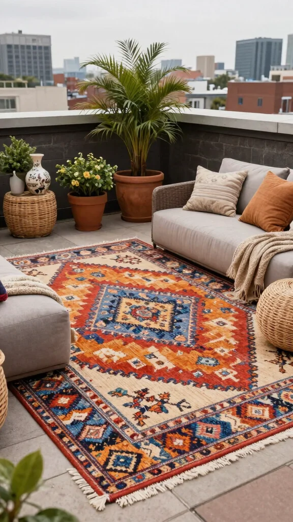 An outdoor rug can elevate your rooftop experience, making it both comfortable and stylish for your guests.