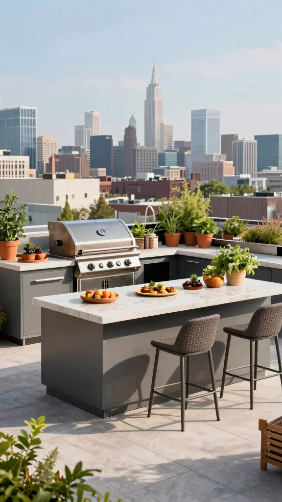 Imagine preparing meals while enjoying stunning views from your rooftop. An outdoor kitchen elevates your culinary experience and makes hosting gatherings or family dinners more enjoyable. Including elements like a grill, prep space, and countertop seating creates a luxurious and functional cooking area.Select a quality grill that suits your cooking style, whether itâs gas or charcoal. Ensure ample counter space for food preparation, and consider adding a sink for convenience. Installing cabinets or shelves will keep utensils and cooking supplies organized, while bar stools or picnic-style seating can create a casual dining atmosphere.Enhance your outdoor kitchen experience with these suggestions: