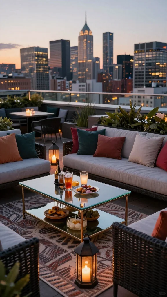 Designing a chic lounge area on your rooftop terrace combines style with comfort, creating an inviting space for entertaining. Plush outdoor sofas paired with sophisticated coffee tables and soft textiles invite you to unwind. Adding colorful throw pillows and a stylish rug can instantly elevate the aesthetic, making it feel like a luxurious outdoor living room.For a functional arrangement, consider modular sofas that allow for flexible seating options. Incorporate decorative touches like vibrant pillows and weather-resistant rugs to define your space. A sleek bar cart stocked with your favorite refreshments will enhance gatherings with friends.Here are some tips to create your perfect lounge area: