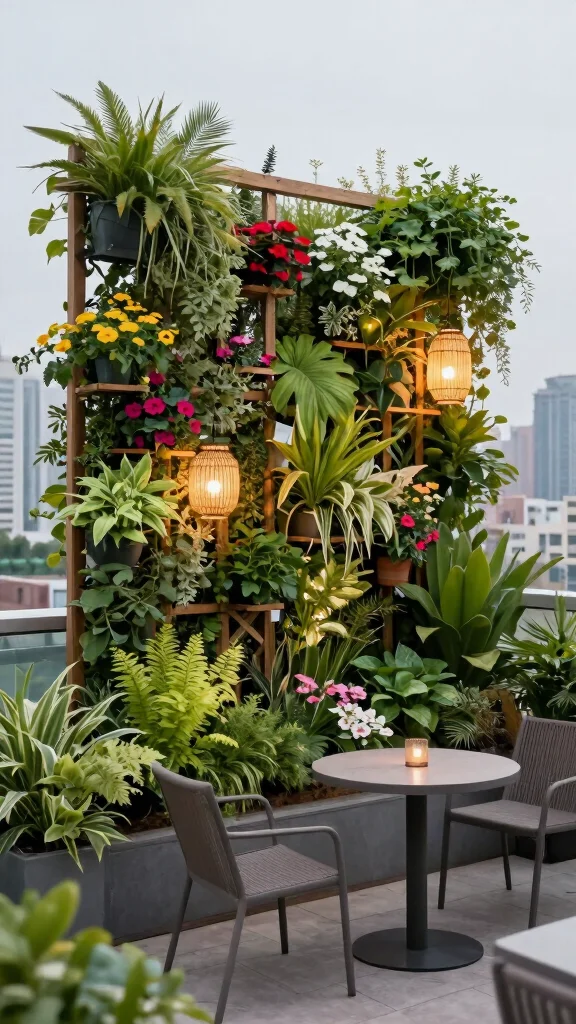 Transform your rooftop terrace into a stunning vertical garden, perfect for maximizing limited space. Vertical gardens create a vibrant backdrop while offering privacy and insulation in urban environments. By incorporating climbing plants like ivy or flowering vines, you can achieve a lush, green aesthetic that captivates the eye.To implement this design, use sturdy wood or metal frames that can withstand outdoor elements. Select plants that align with the sunlight and watering conditions of your space to ensure successful growth. Regular maintenance, such as checking for pests and providing adequate water, will keep your garden thriving.Consider these essential elements for your vertical garden: