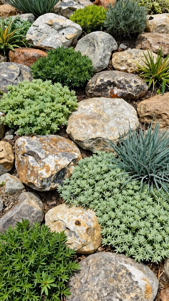 Incorporate various sizes of rocks, boulders, and gravel to add texture and interest. Plant perennials among the stones, allowing them to spill over edges for a natural appearance.