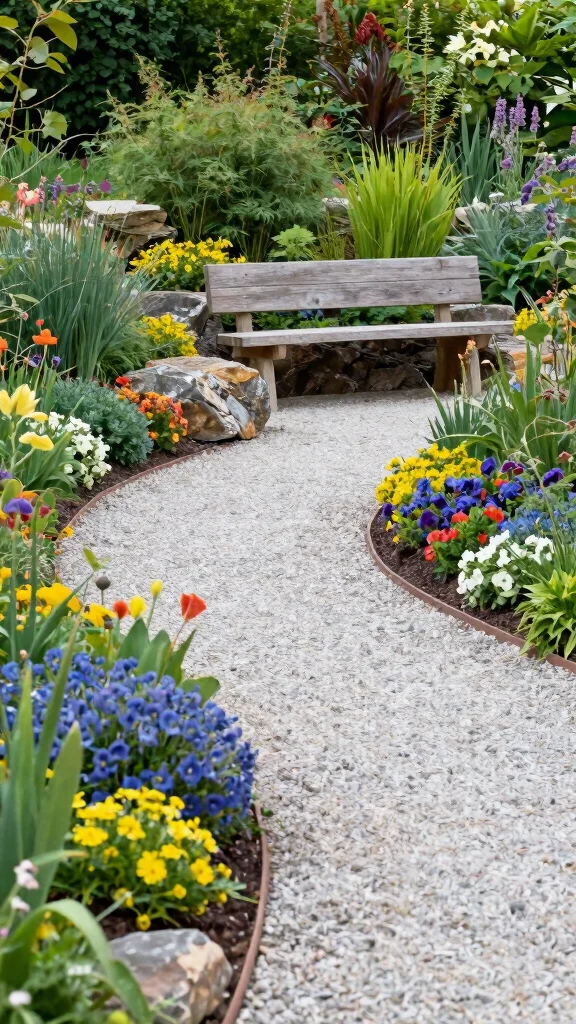 Design your layout to create focal points; position benches among flower beds for serene seating areas, or use gravel paths to guide visitors.