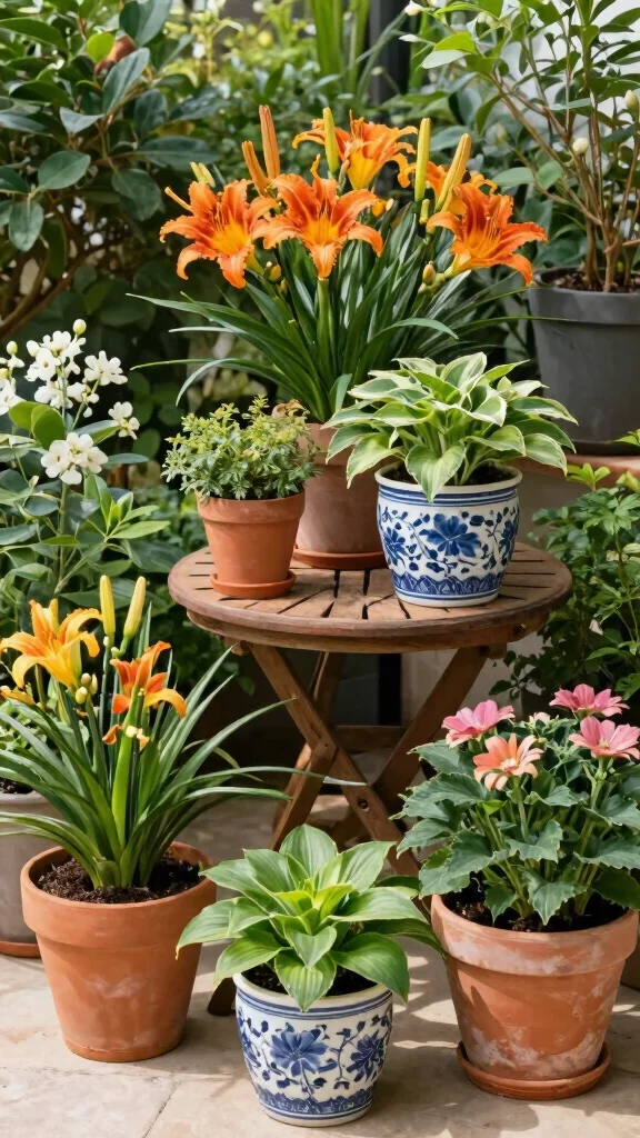 Select hardy perennials such as daylilies, hostas, and ornamental grasses that thrive in pots. Layering plants of varying heights creates stunning focal points on balconies or patios.