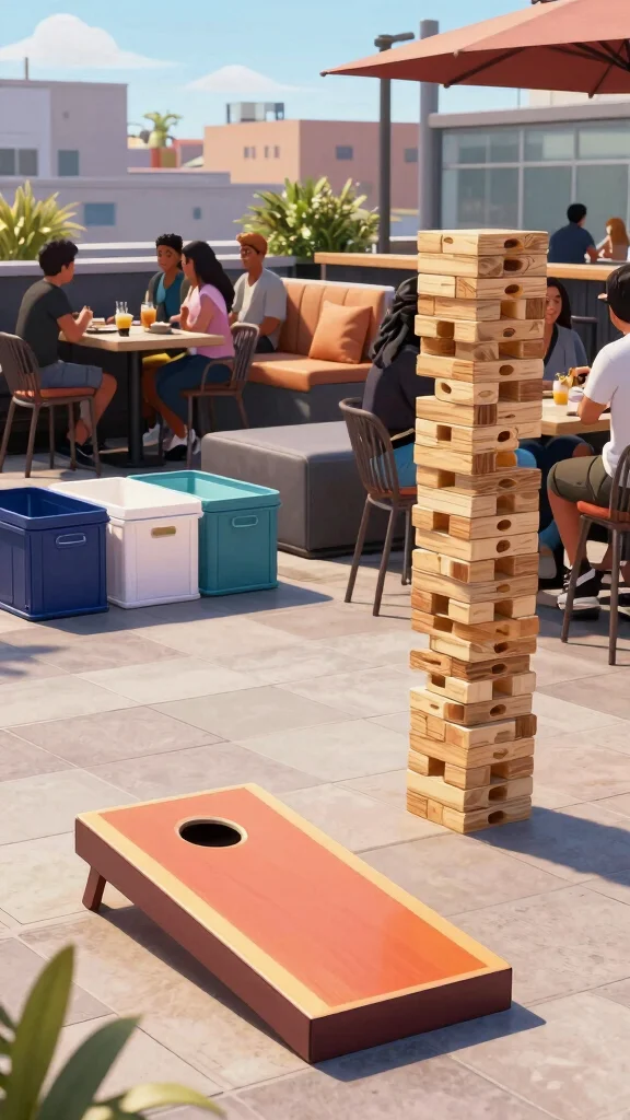 Elevate the fun factor at your rooftop bar by incorporating creative outdoor games. Options like cornhole, giant Jenga, or even a putting green can add delightful elements that encourage interaction among guests. Imagine laughter filling the air as friends engage in friendly competition, creating memorable experiences.
