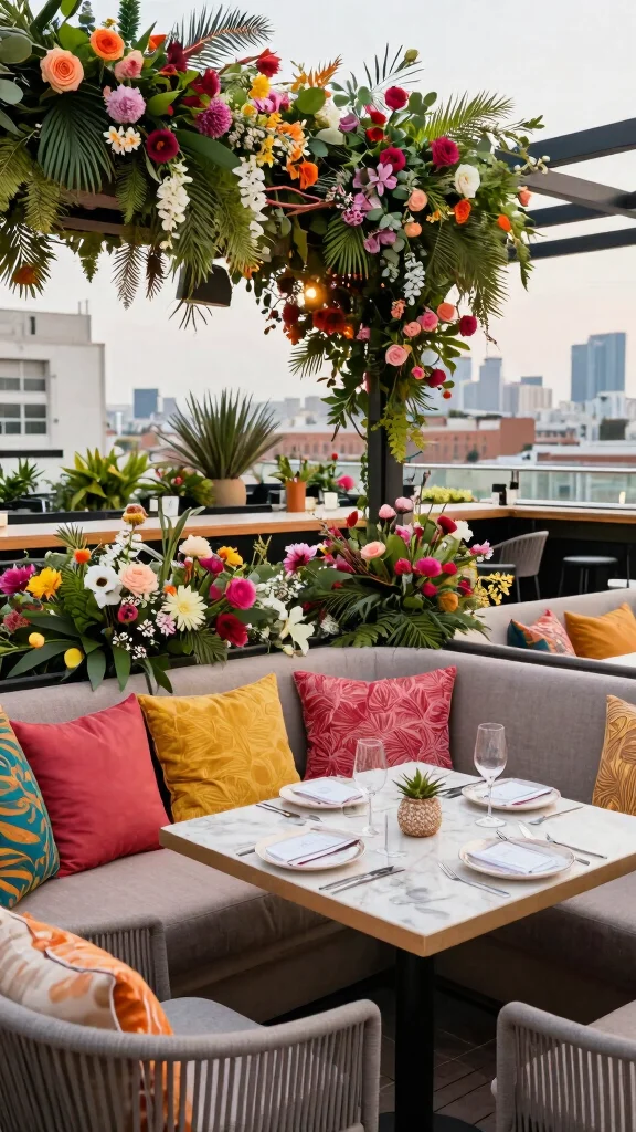 Keep your rooftop bar fresh and inviting by implementing seasonal decor changes. Rotating elements like table settings, cushions, and floral arrangements can breathe new life into the space, ensuring it feels new and exciting for returning guests. Picture vibrant spring blooms adorning tables or cozy autumn colors creating a warm ambiance, enhancing the overall experience.