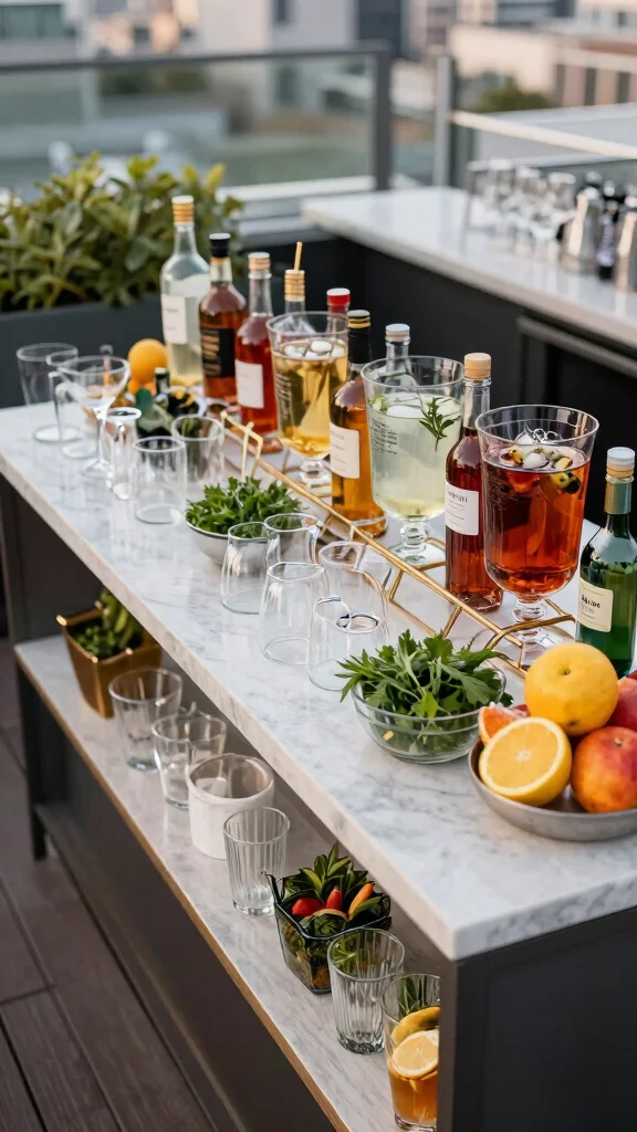 A well-organized drink station encourages social interaction and enhances the fun atmosphere of your rooftop bar. By labeling each component, you make it easy for guests to navigate, ensuring a seamless experience for everyone.