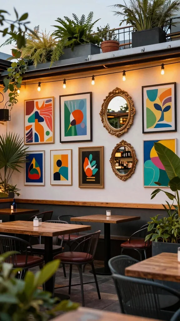 Incorporating artful wall decor can infuse your rooftop bar with personality and charm. Hang framed artwork, striking photographs, or decorative mirrors to create a stunning visual impact that makes your space feel curated. Bold pieces can serve as conversation starters, enhancing the overall ambiance of your bar.