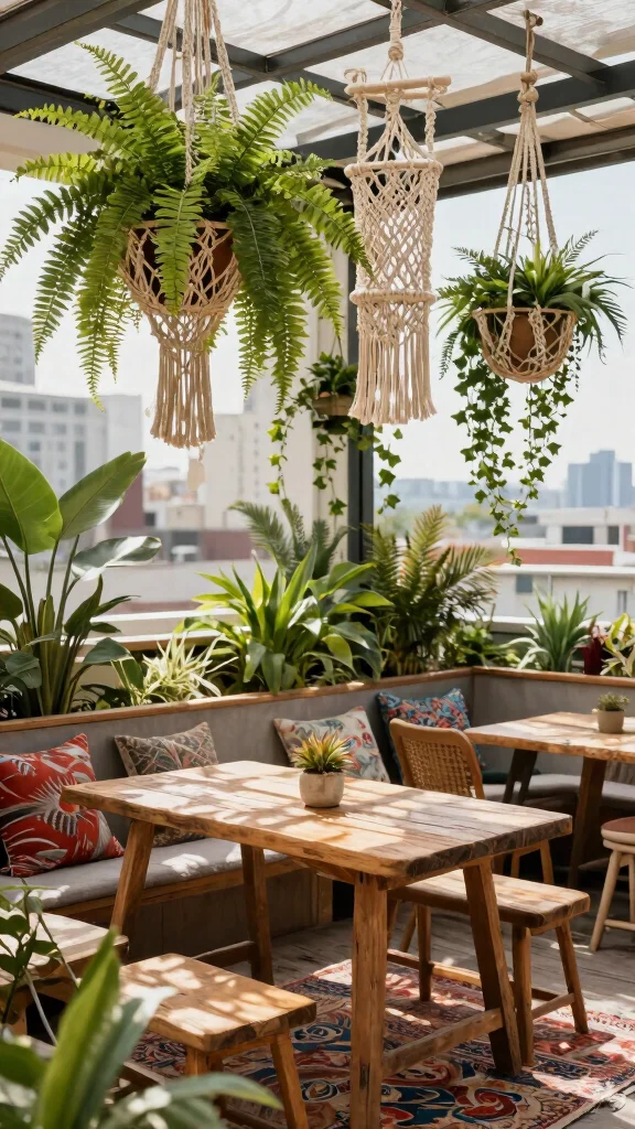 – Transform your rooftop into a cozy space with macrame hangers and lush greenery to enhance the natural vibe.