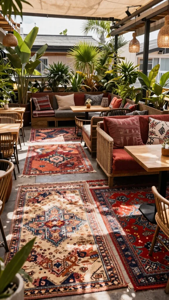 Incorporating textured rugs into your outdoor seating areas can significantly enhance the cozy vibe of your rooftop cafe. Bohemian-style rugs, with their vibrant patterns and natural fibers, provide comfort for guests who want to kick off their shoes and relax. These rugs not only define designated seating areas but also add warmth and visual interest to your cafe’s ambiance.
