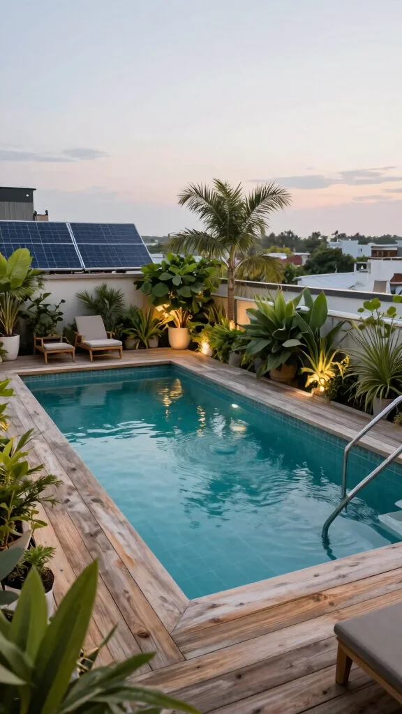 Create a luxurious yet sustainable rooftop pool with eco-friendly designs that minimize your carbon footprint. Incorporating solar panels to heat the water and rainwater harvesting systems for maintenance showcases your commitment to sustainability while offering a lavish retreat. This approach uses natural filtration systems instead of chemicals, promoting a healthier swimming environment.